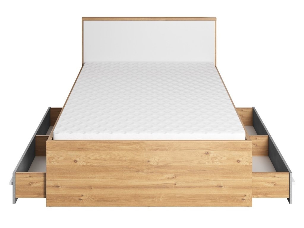 Postel se zásuvkami (127 x 86 x 211 cm) – součástí je rošt, matraci je nutno dokoupit (doporučený rozměr 120x200 cm).