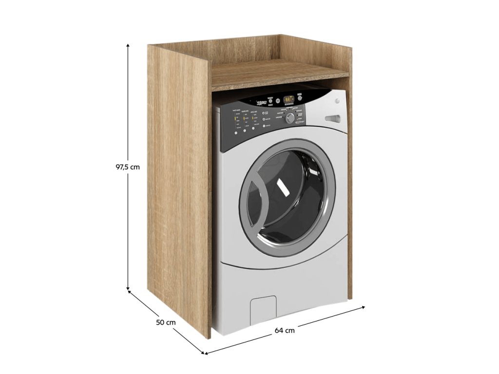S rozměry 64x50x97,5 cm a prostorem pro pračku 60,8x86,4 cm je vhodná pro standardní modely. Vrchní deska unese až 10 kg, což umožňuje pohodlné ukládání doplňků nebo dekorací. Skříňka je postavena na kluzácích, takže její umístění a případné přemístění je jednoduché.