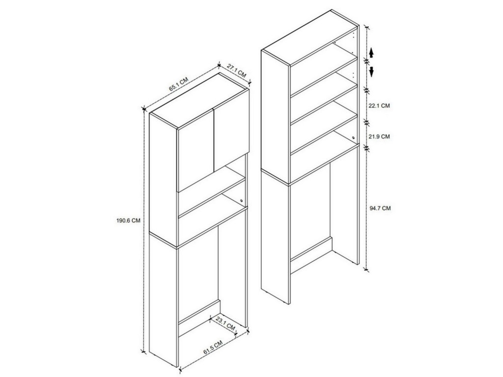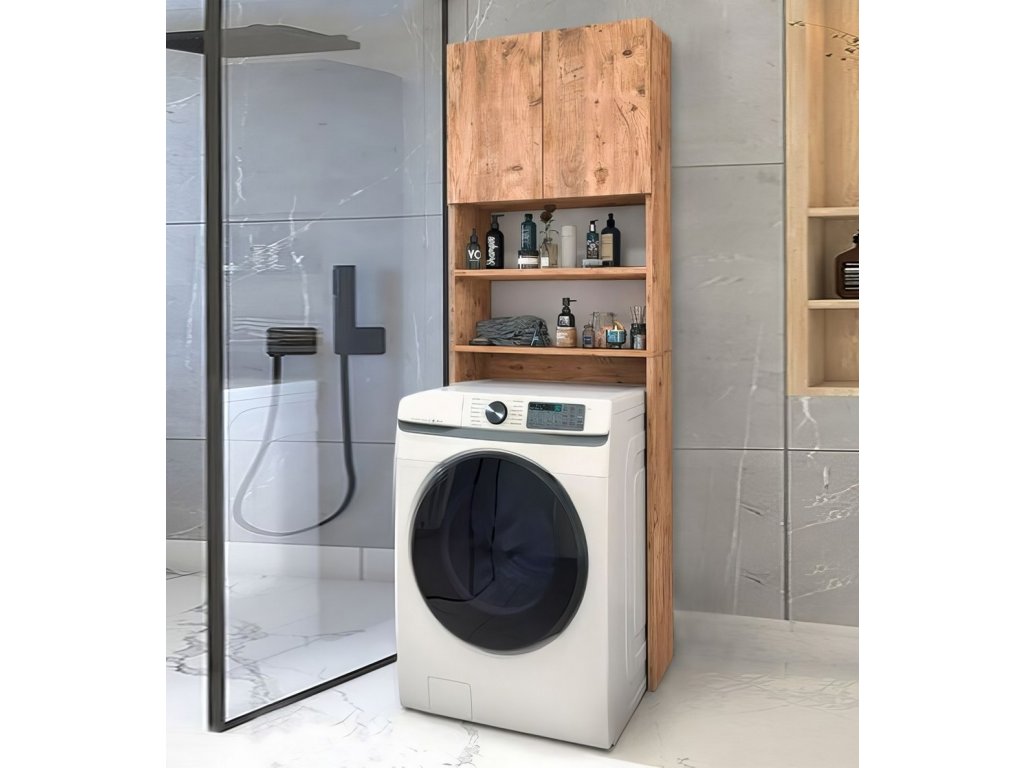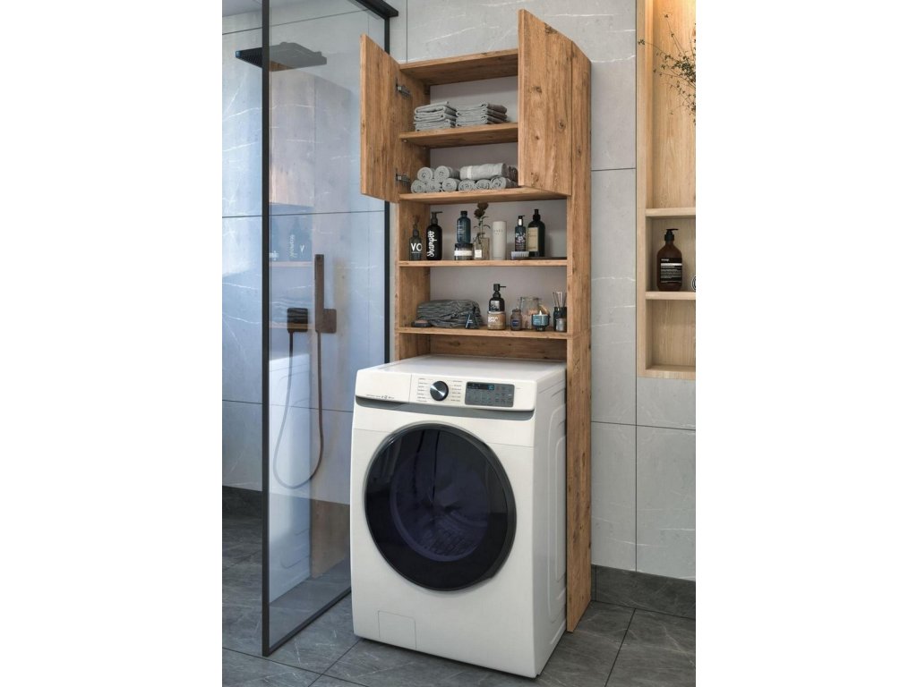 Dvoudveřová skříňka nad pračku s policemi je vyrobena z kvalitní desky LTD nenáročné na údržbu, v barevném provedení borovice. Tloušťka materiálu - 18 mm. Dodáváme v demontovaném stavu.Doplňkové parametry