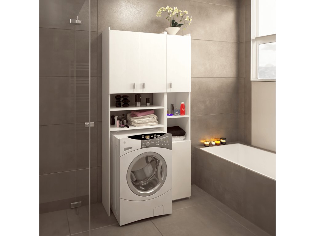 Bílý povrch působí svěže, opticky zvětšuje prostor a snadno se kombinuje s ostatním vybavením koupelny. Díky kompaktním rozměrům se skříňka hodí nad většinu běžných praček, takže pomáhá udržet vaši koupelnu přehlednou a organizovanou.