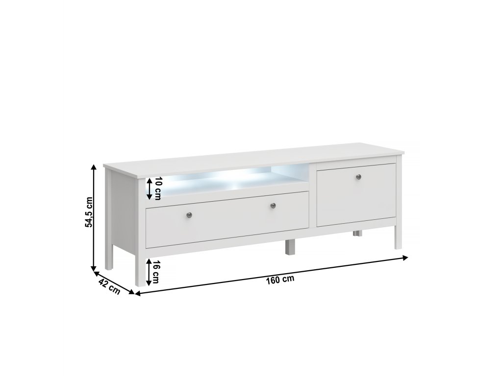 Televizní stolek SHAEL v bílé barvě je ideální kombinací moderního designu a praktické funkčnosti. S rozměry 160x42x54,5 cm se hodí do menších i větších pokojů a nabízí dostatek úložného prostoru pro elektroniku, dekorace i média.