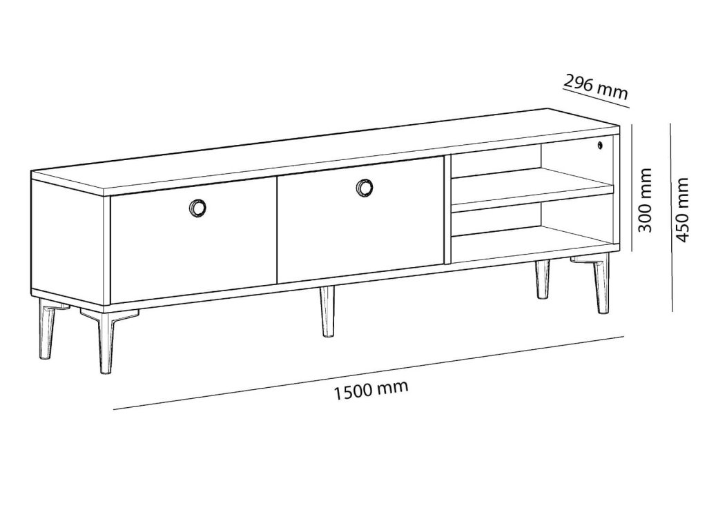 Promyšlené uspořádání zahrnuje otevřený regál pro multimediální zařízení i dvojici skříněk s dvířky, které poskytují dostatek prostoru pro uložení příslušenství a domácích potřeb. Tím stolek vybízí k přehlednému a organizovanému uspořádání obývacího prostoru.