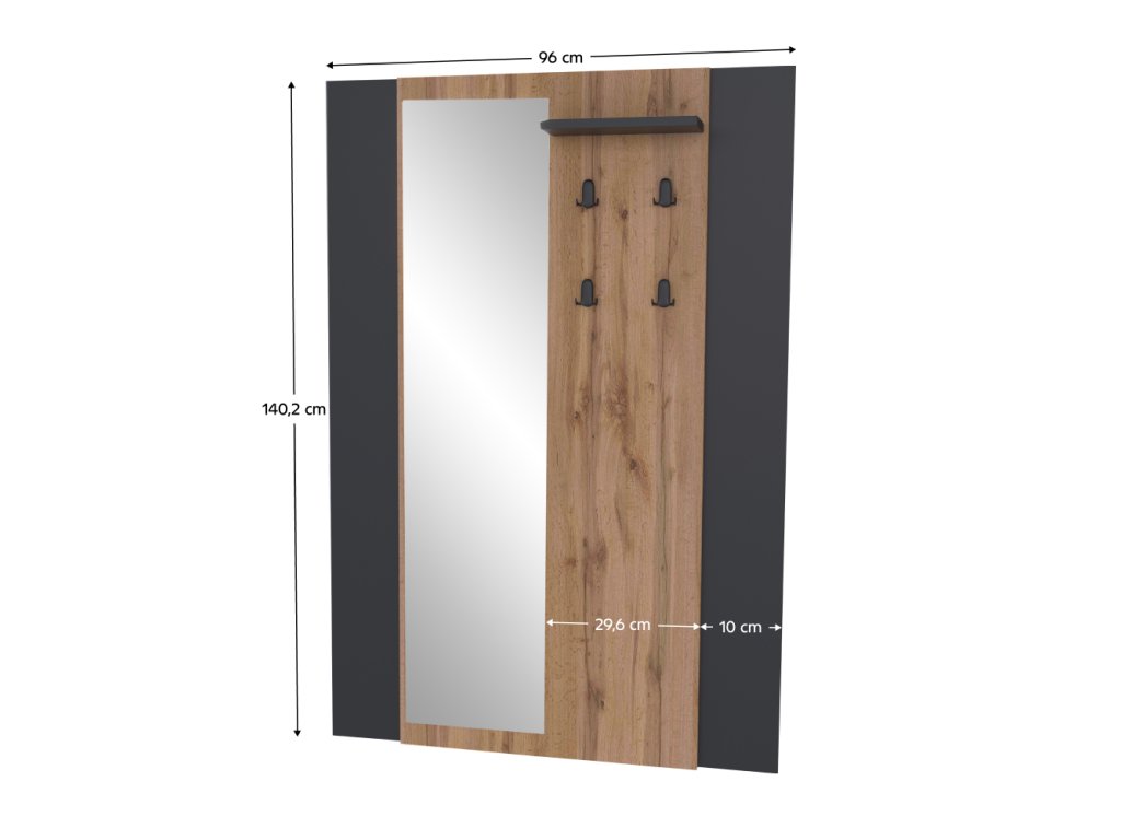 Věšákový panel se zrcadlem AMONI | DUB WOTAN / ČERNÁ