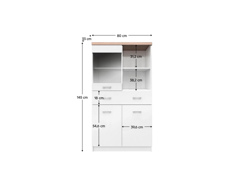 Vitrína 2D1W1S / 80, bílá / dub sonoma, VITALIO TYP 02