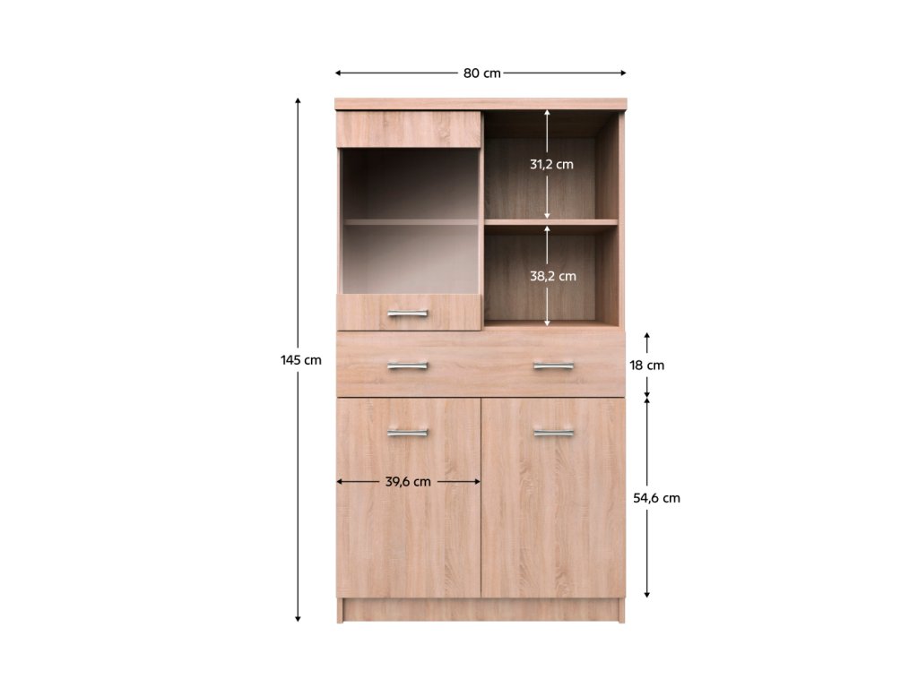 Vitrína 2D1W1S/80, dub sonoma, VITALIO TYP 34