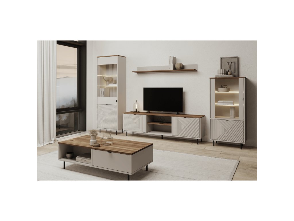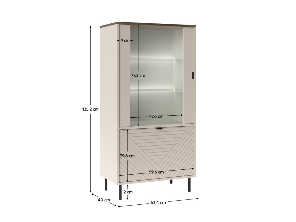 Vitrína SAIDY 1D1W kašmír / dub castello – moderní úložný prostor pro váš interiér