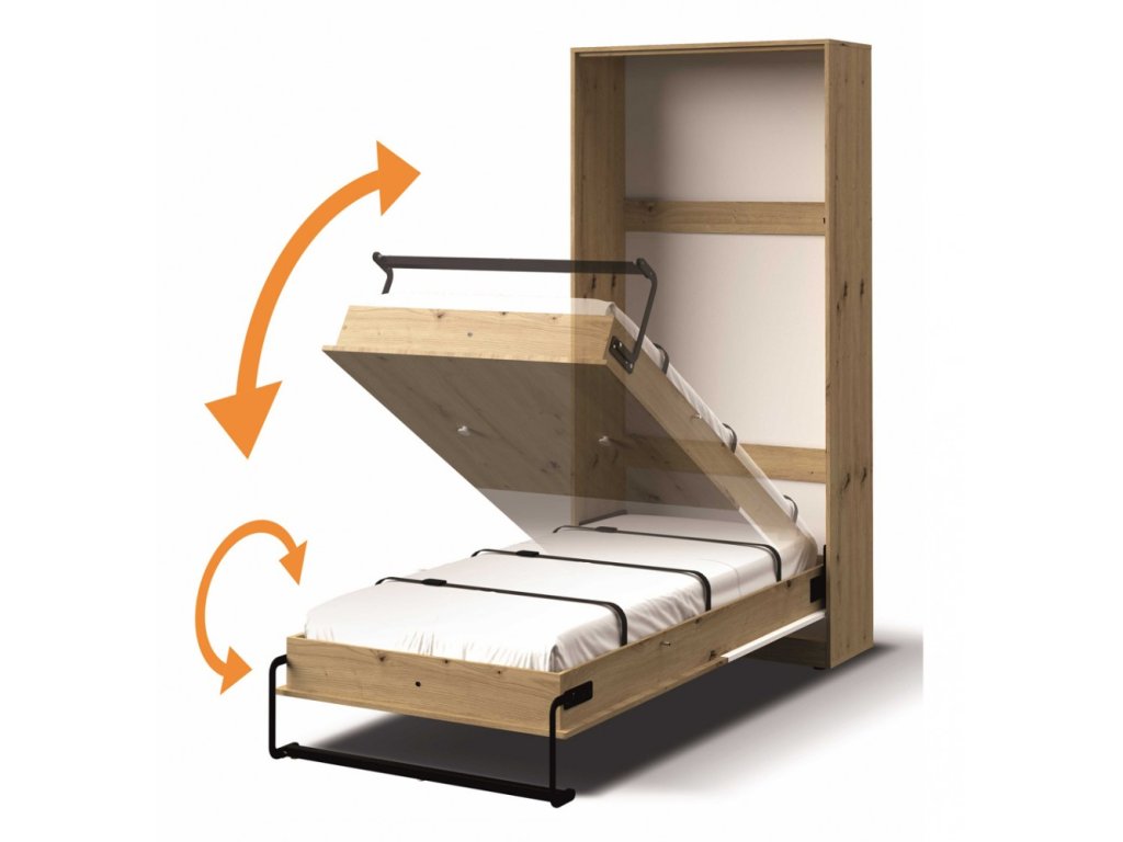 Praktičnost a bezpečnost – postel je vertikálně výklopná a musí být připevněna ke stěně, čímž zajistí stabilitu a bezpečný spánek.