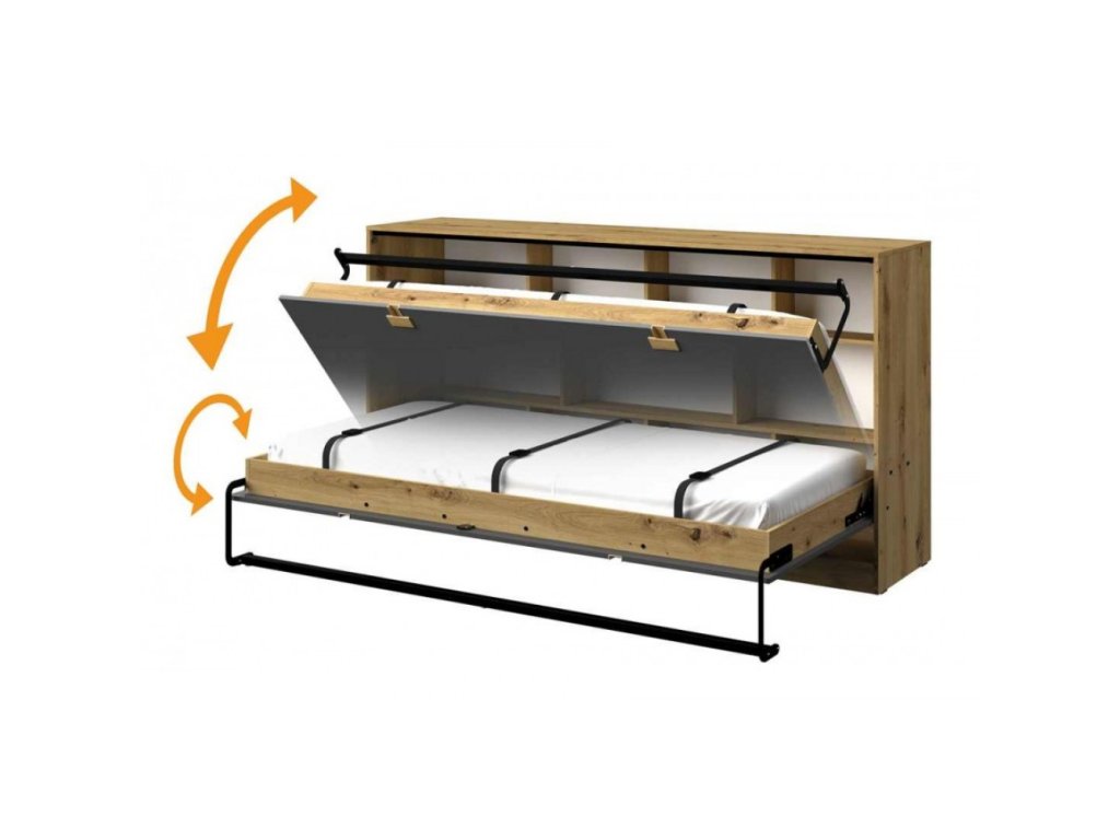 Postel se výklápí horizontálně a nabízí komfortní spací plochu 90x200 cm. Součástí je kvalitní rošt, matrace si můžete vybrat podle svých potřeb (maximální výška matrace 15 cm).