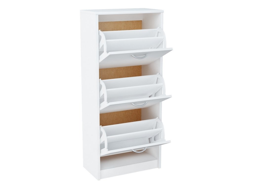 Třídveřová konstrukce s výklopnými dvířky pro snadný přístup k obuvi