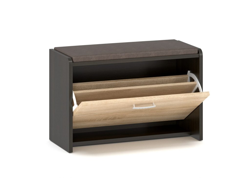 OLIVAI – moderní botník s čalouněným sedákem v dekoru dub sonoma/wenge