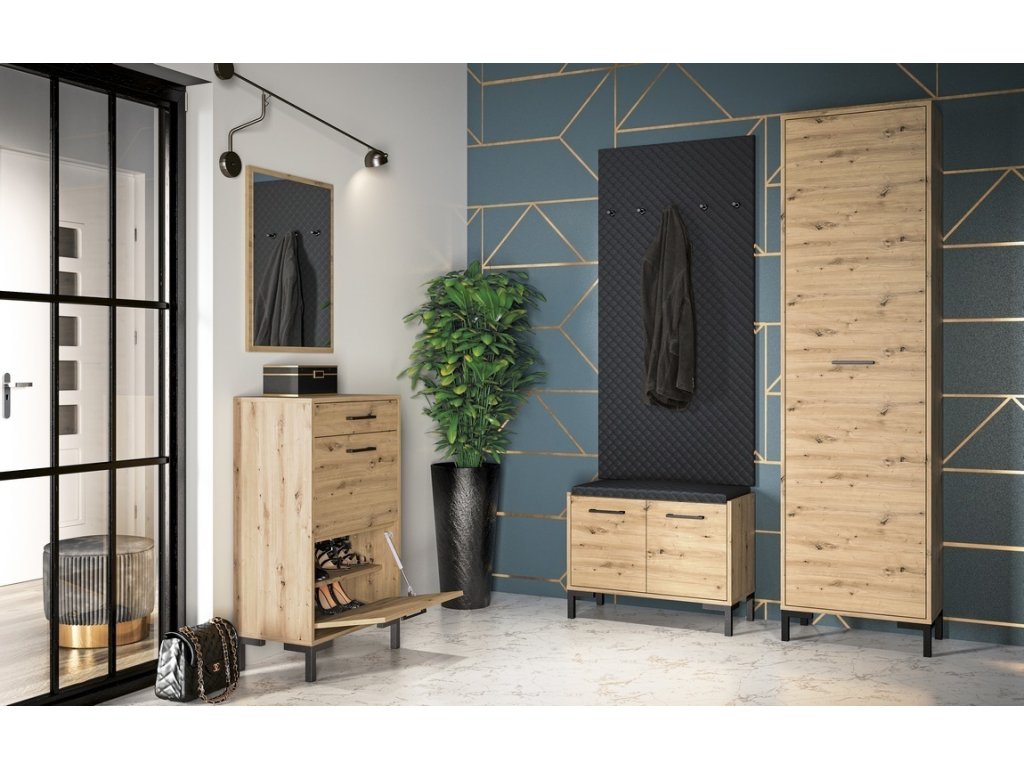 Uspořádejte svou předsíň prakticky a elegantně s botníkem FERID v dekoru dub artisan. Tento moderní nábytek kombinuje stylový design s funkčností a nabízí dostatek prostoru pro přehledné uložení obuvi, zatímco elegantní vzhled doplní každou předsíň či chodbu.