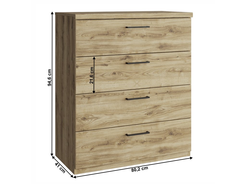 Komoda RINN 4S nabízí kombinaci kvality, odolnosti a moderního vzhledu, která přináší praktické a estetické řešení do každého interiéru.