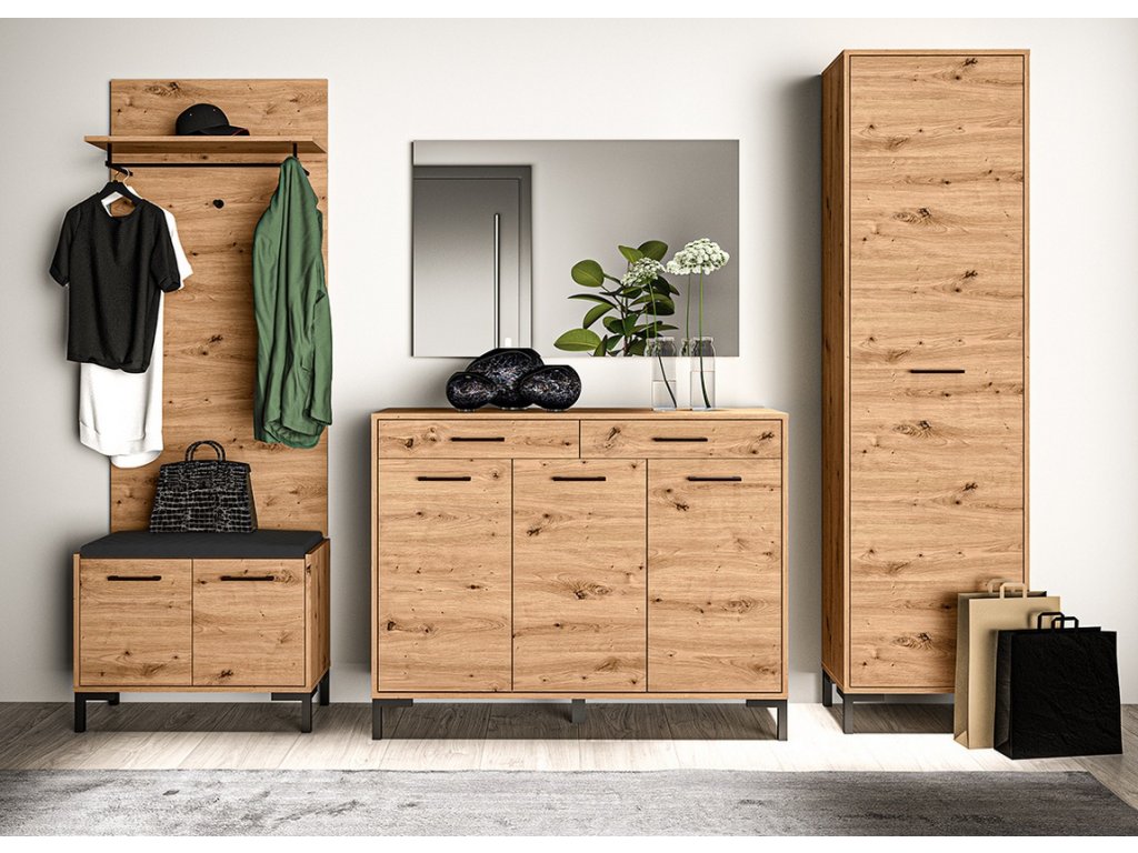 Doplňte svůj interiér praktickým a elegantním prvkem s zrcadlem FERID v dekoru dub artisan. Moderní design zrcadla přináší více světla a opticky zvětšuje prostor, díky čemuž je ideální do předsíně, ložnice nebo chodby.